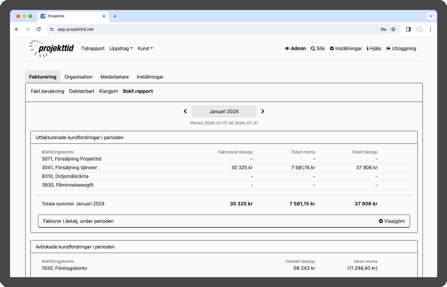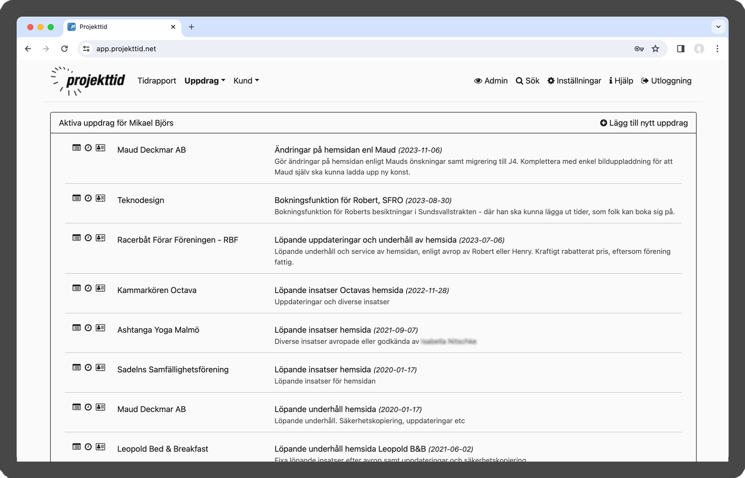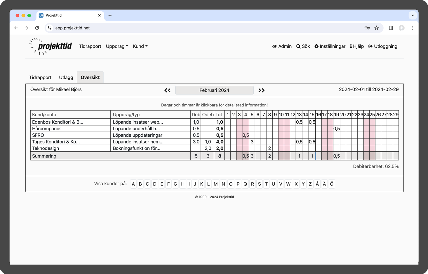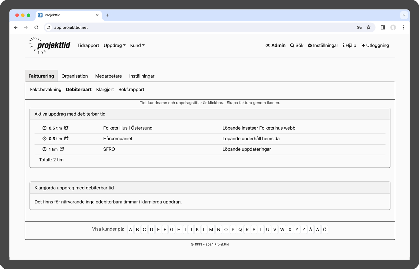Projekttid i webbläsare