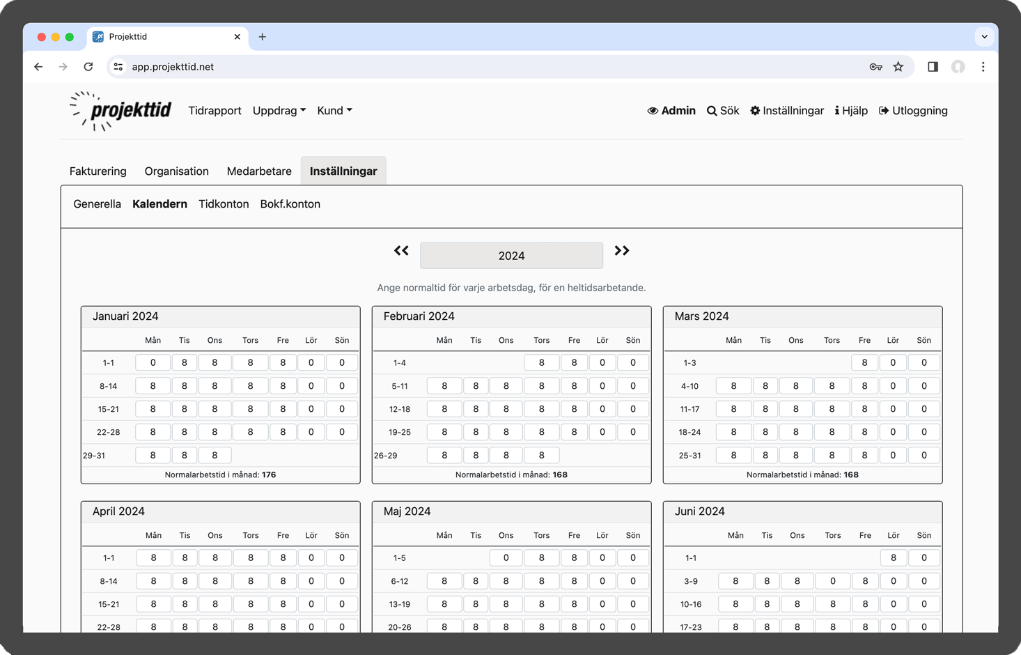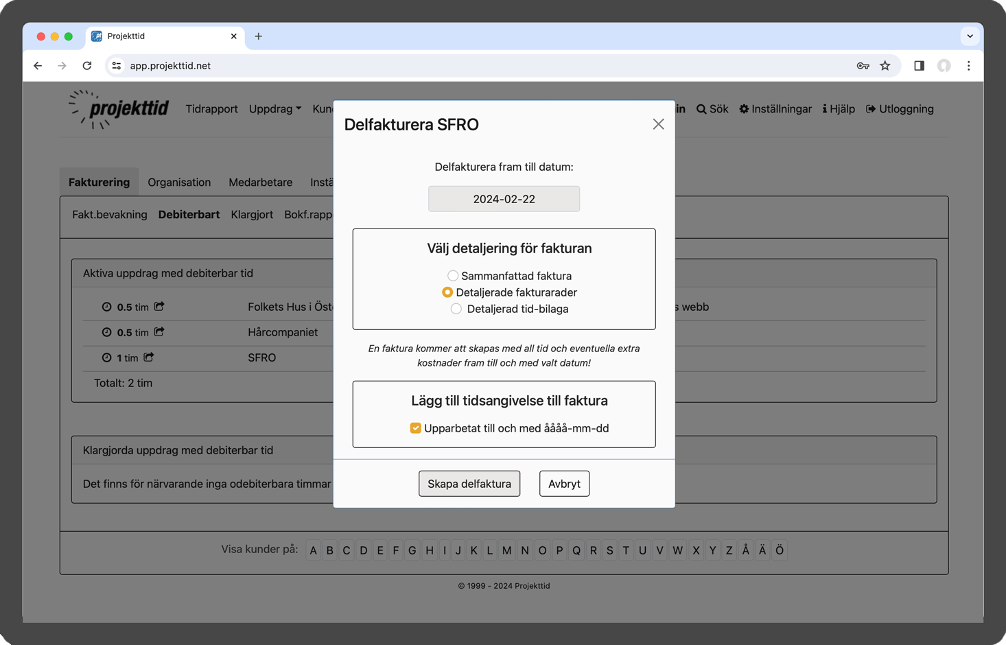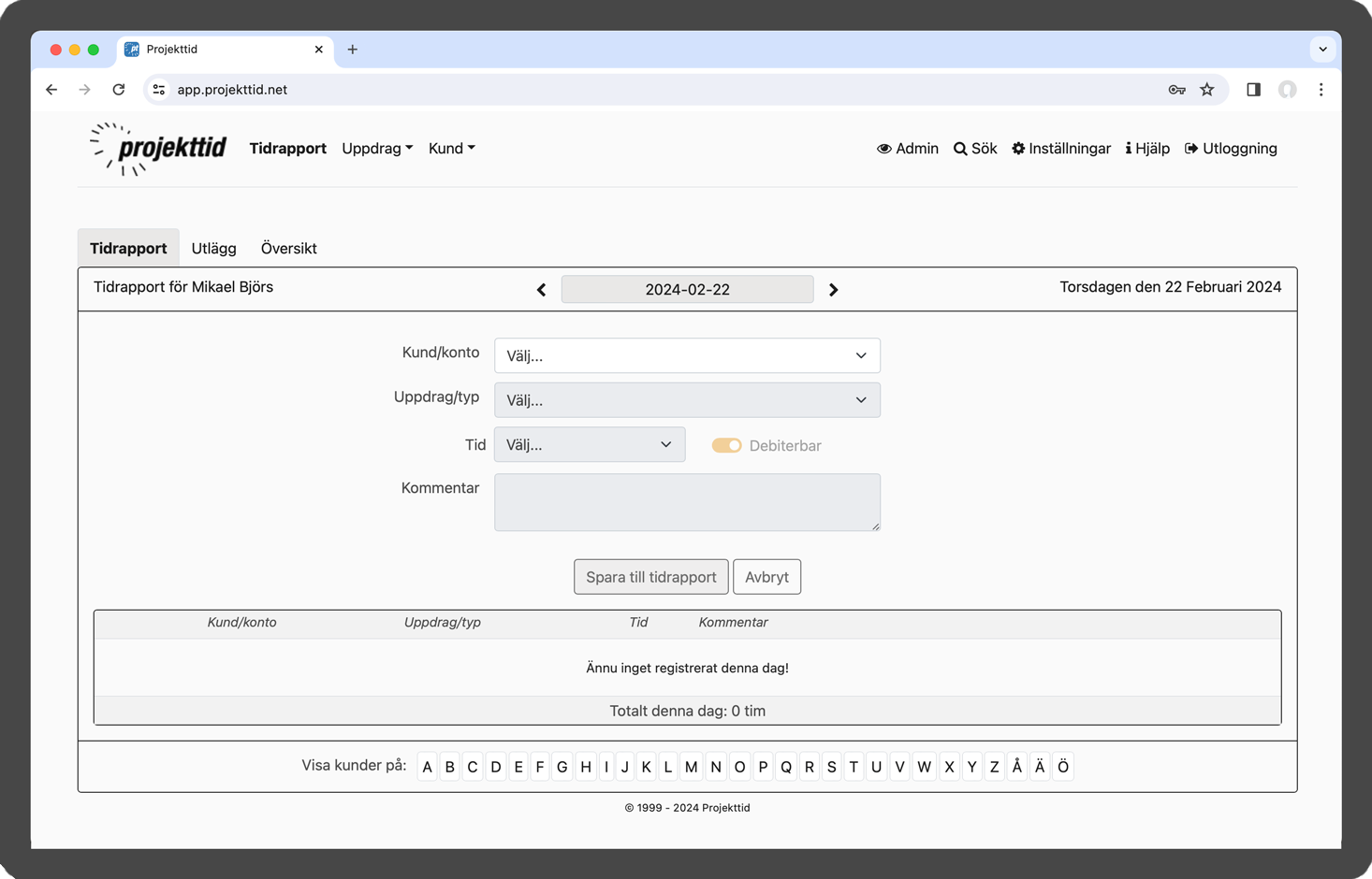 Projekttid i webbläsare