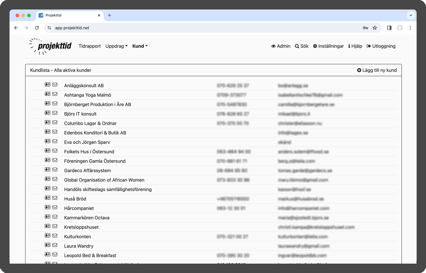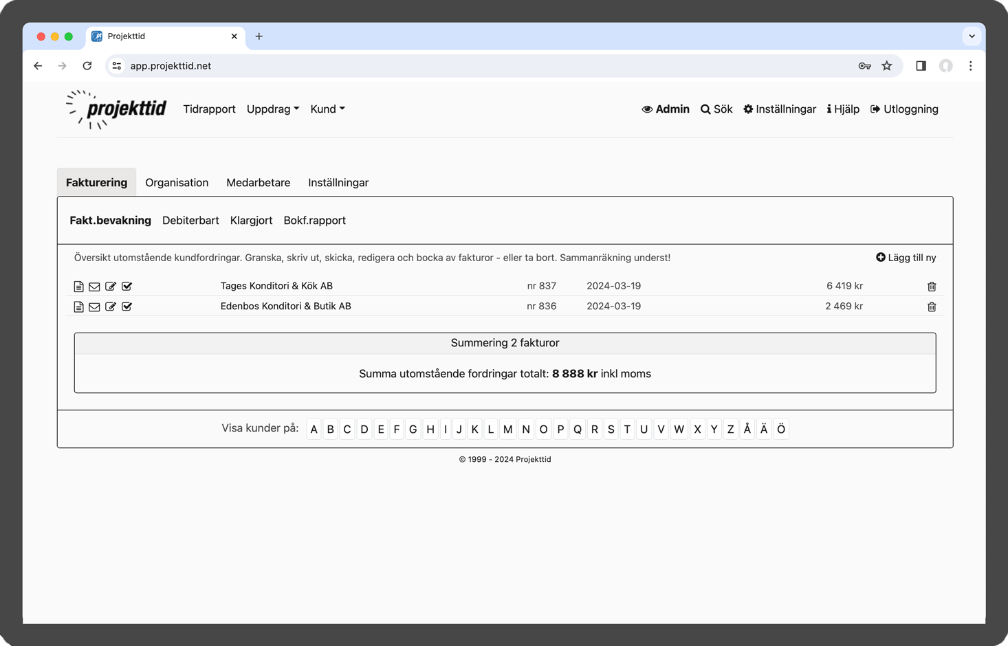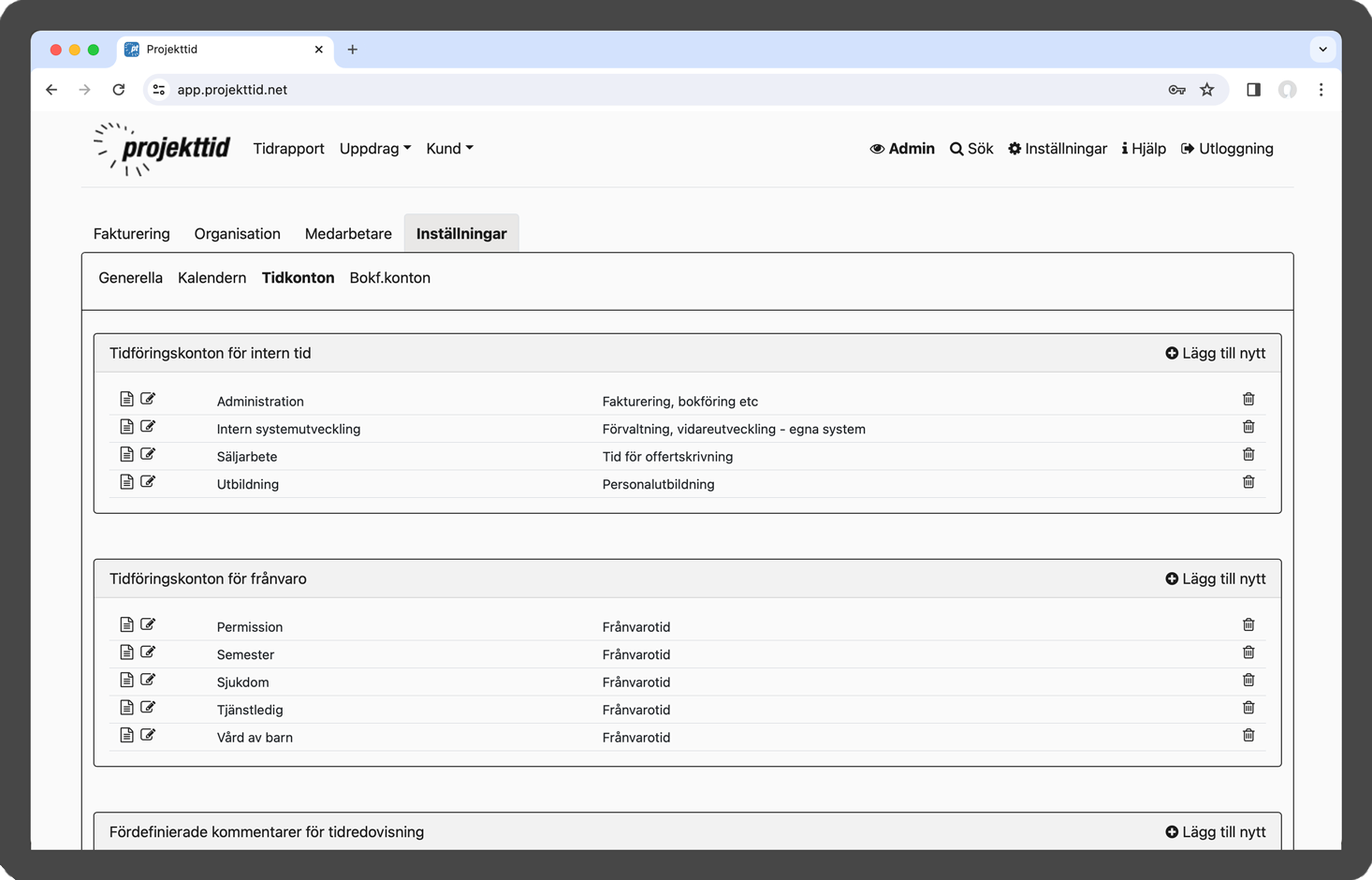 Projekttid i webbläsare