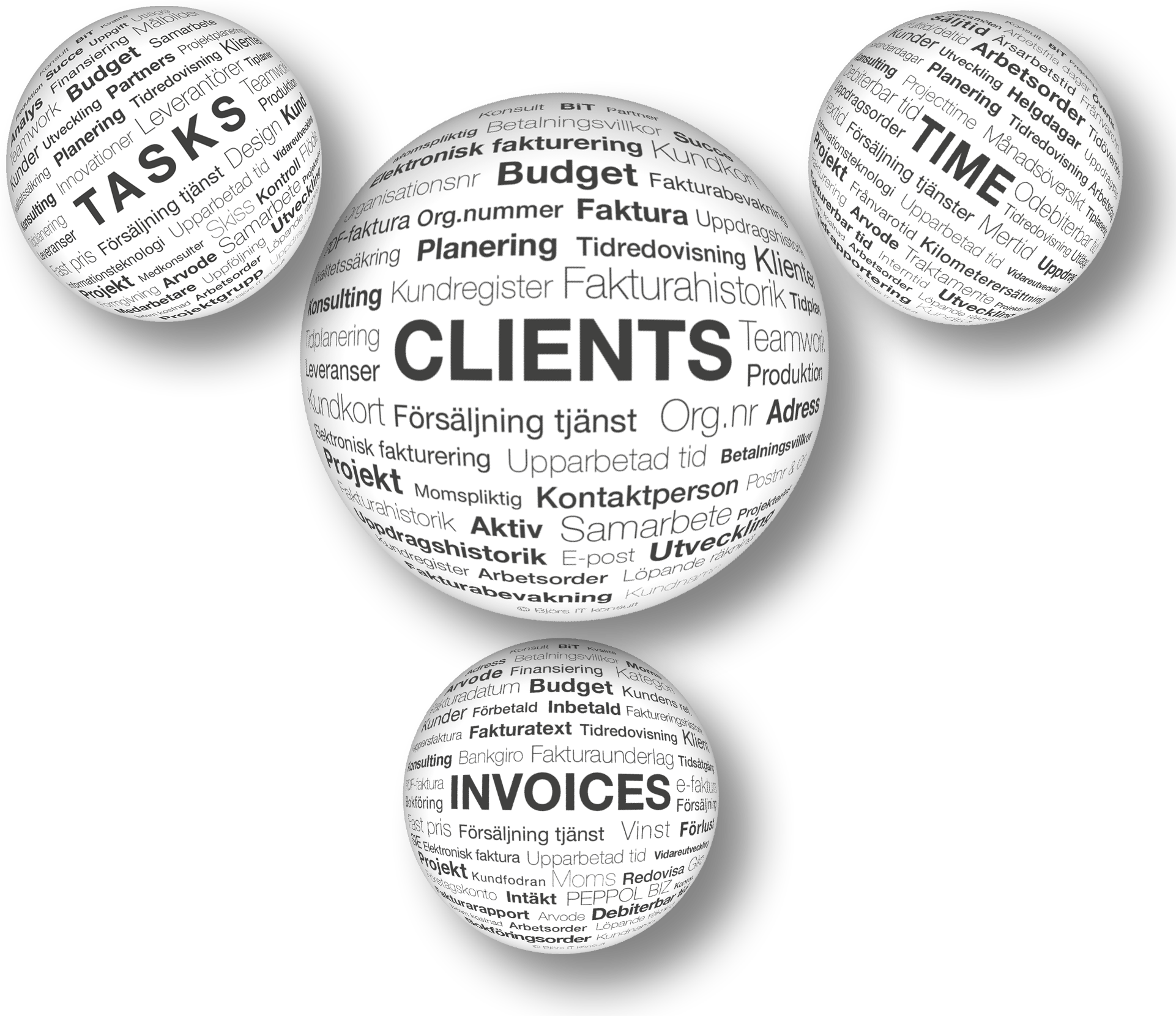 Of course, project time is also a customer and project management, since billable time is always linked to a customer and an project. Project time also handles invoicing. Projecttime can now send electronic invoices, according to the new european standard PEPPOL BIZ.